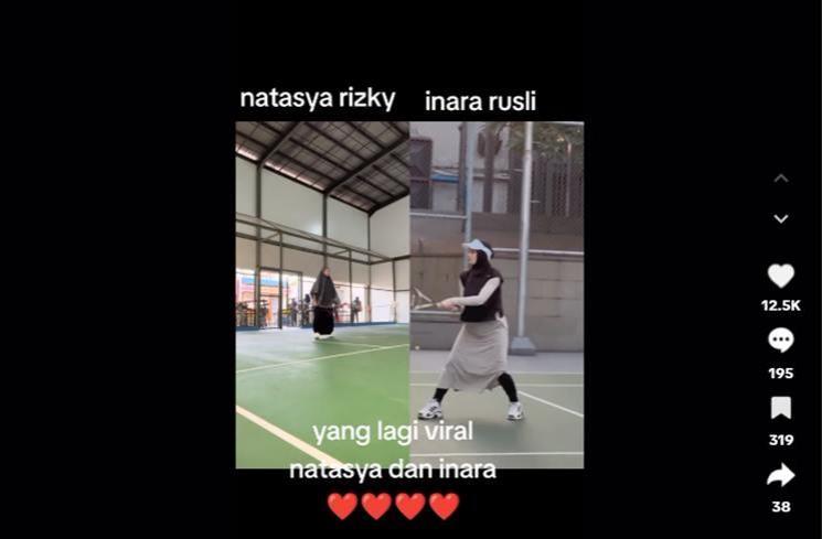 Adalah akun TikTok racun_hijab.id5 yang menyandingkan baju olahraga Natasha Rizki dan Inara Rusli. Keduanya nampak tengah melakukan olahraga yang berbeda dalam video tersebut.